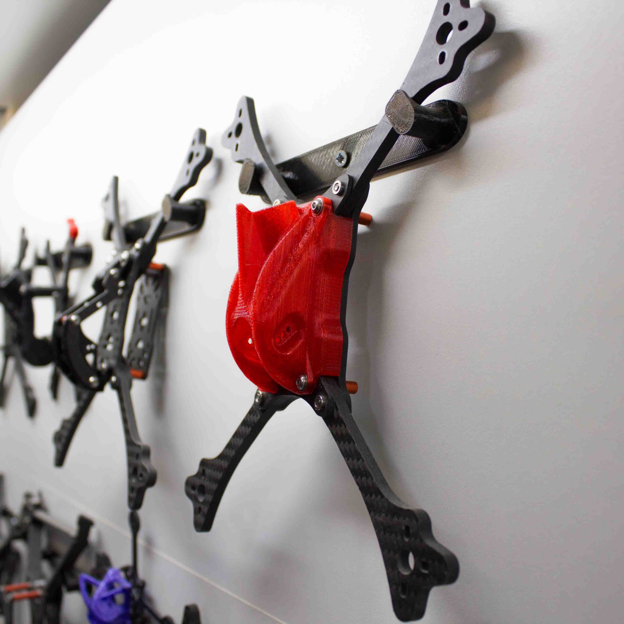 This is our custom 3D printed FPV Drone wall mount. It fits for probably any 3-7″ frame.