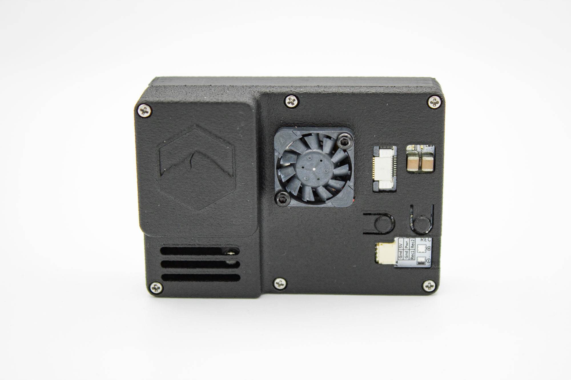 Our custom BEC includes a Power and REC button combination that allows easy camera operation. One LED provides information about camera status (POWER).
