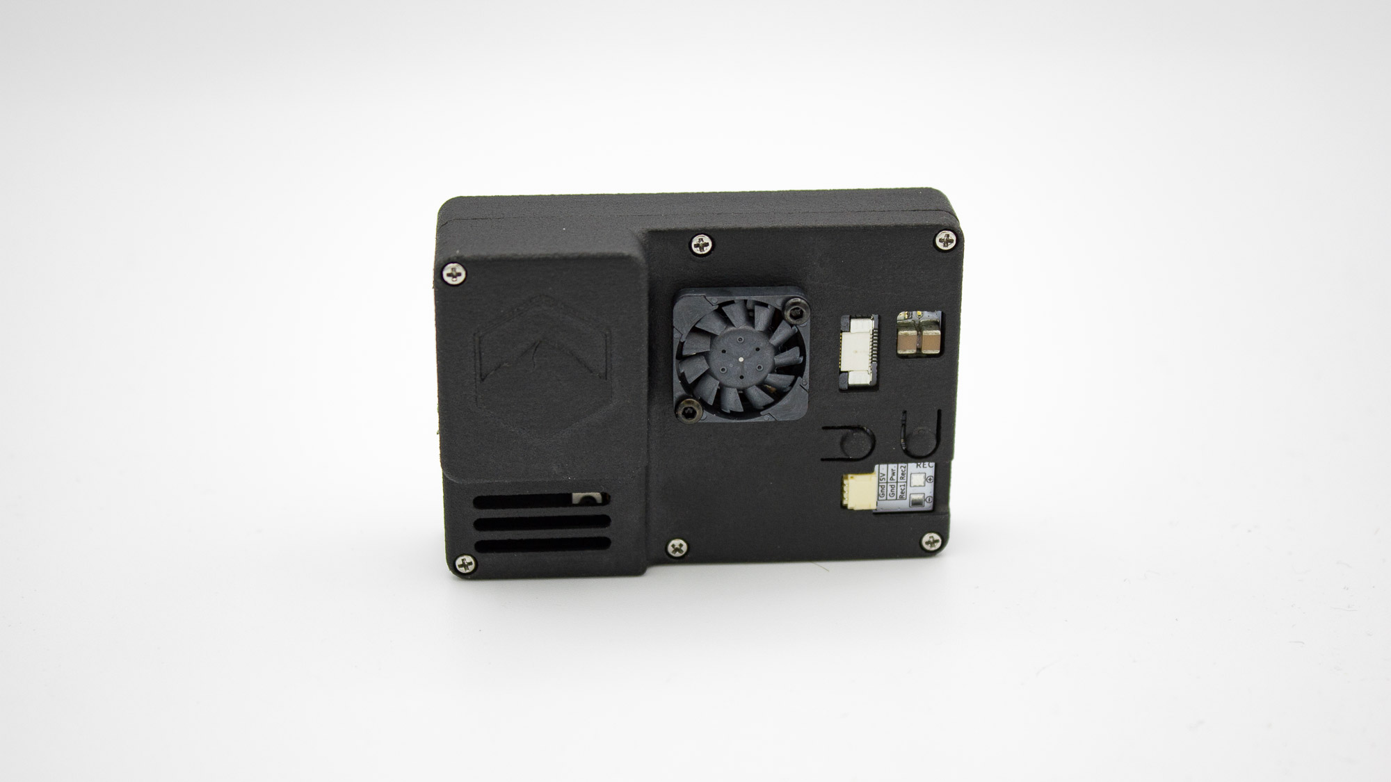 Our custom BEC includes a Power and REC button combination that allows easy camera operation. One LED provides information about camera status (POWER).