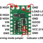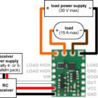 This RC switch converts hobby radio control pulses to digital on/off signals and has an integrated medium, low-side MOSFET that allows it to drive moderate loads (up to around 15 A), such as lighting or small actuators. The activation threshold and direction are configurable, and a safe-start feature reduces the likelihood of unexpected activation. The board also includes a linear regulator that allows it to be powered with voltages between 2.5 V and 16 V.