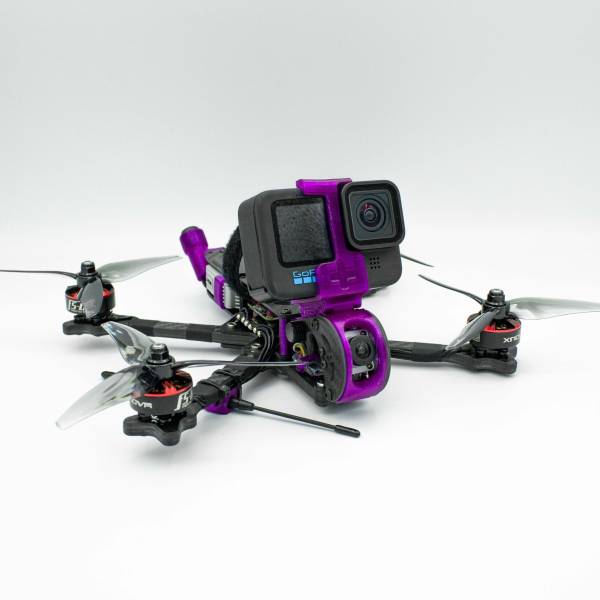 Prepare the TPU GoPro mount by adding two 20mm M3 standoffs into the holes. Heating up the TPU can help you with this step.